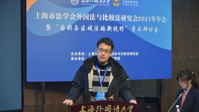 11月21日,上海市法学会外国法与比较法研究会2021年年会暨“国别与区域法的新视野”学术研讨会在上外虹口校区第二报告厅举行。来自复旦大学、上海交通大学、同济大学、华东师范大学、上海外国语大学、东华大学、华东政法大学、上海对外经贸大学、上海师范大学、上海海事大学、上海政法学院等高校及中伦律师事务所、译林出版社等单位近50名专家学者出席研讨会。