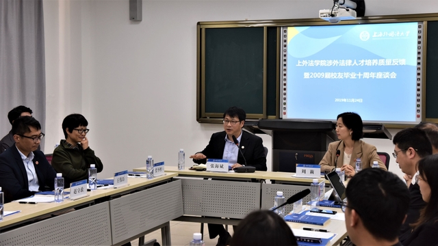 11月24日,法学院涉外法律人才培养质量反馈暨2009届校友毕业十周年座谈会在上外松江校区四教楼特色教室举行。法学院党政领导、专业教师代表和2009届返校校友出席了座谈会。党总支副书记周莉主持会议。