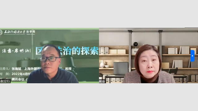 49日,上外法学院法意•席明纳暨“区域法治的探索”学术研讨会在线举行。来自复旦大学法学院、上海交通大学凯原法学院、同济大学法学院、华东政法大学、上海政法学院、上海财经大学法学院及上海外国语大学法学院7位专家分别就区域法治的理论与实践问题作了主旨分享。法学院院长张海斌主持研讨,近200名校内外师生在线参加了活动。