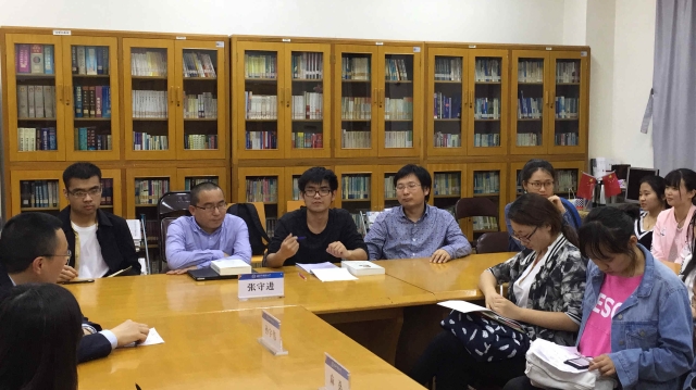 与会教师分别从法制史、法律文化、语言学等角度分享了自己的心得。王伟臣老师对“依法治国”的新、老十六字方针进行了对比,分析其内在逻辑发展,认为新十六字方针顺应中国特色社会主义法治建设的需求,说明我党对立法、司法的认识已更加科学化。张守进老师对《习近平谈治国理政》的英译本相关篇目进行了解读,提出师生应全面把握十八大以来党中央治国理政新理念新思想新战略的内涵,发挥语言特长,更好地讲述中国故事。沈志韬老师结合历史国情与现实国情,从“一个主线”、“两个目标”、“四个全面”等角度分析了我党经受的历史考验与未来目标,论证了现代化、改革与党的领导与中国特色社会主义法治间的密切关系。华瑀欣老师举例说明了国外学界对我国“依法治国”理念的态度,提出有必要在民众层面增强我国和其他国家的文化交流,促进世界对中国的正确认识。