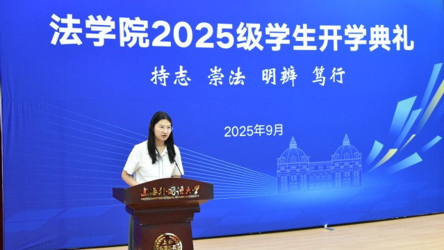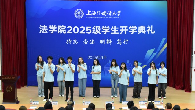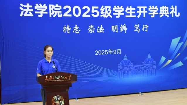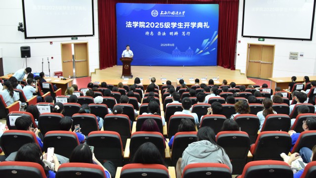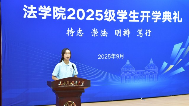9月19日,上海外国语大学法学院2025级新生开学典礼在松江校区图文信息中心西厅举行。法学院党政领导、专业教师代表及法学院2025级本科生、研究生新生共同出席了典礼。法学院党委副书记宋亮主持活动。