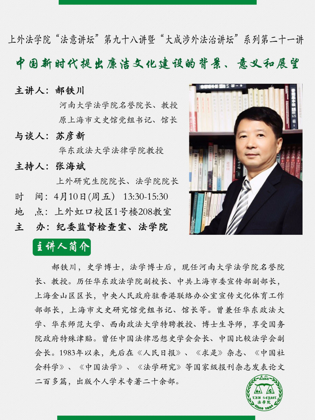 上外法学院“法意讲坛”第九十八讲暨“大成涉外法治讲坛”系列第二十一讲